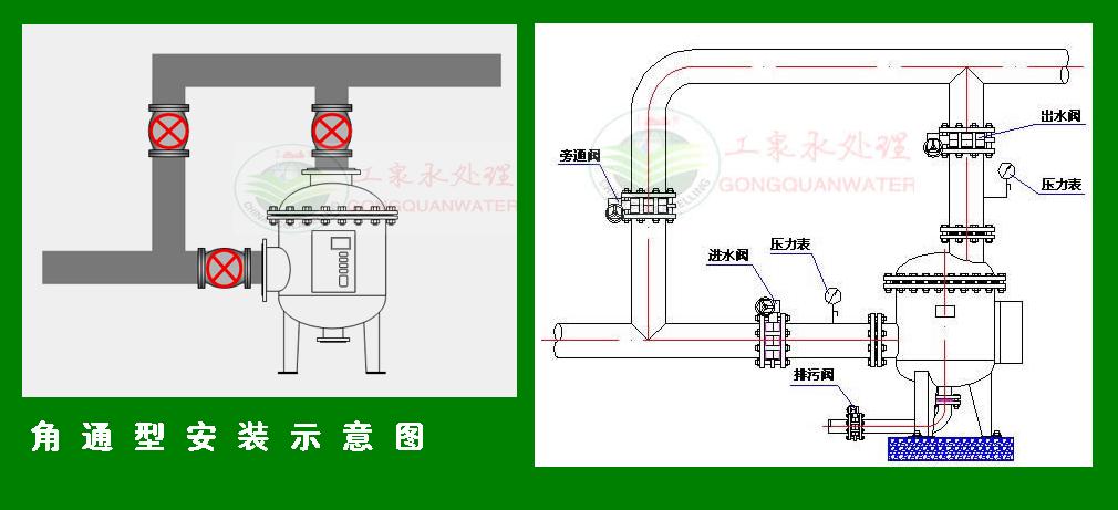 3.設(shè)備安裝形式應(yīng)為旁通式安裝,以滿足不停機(jī)狀態(tài)下檢修設(shè)備和反沖洗濾體。
